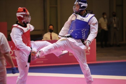 한국 장애인태권도 국가대표 주정훈(오른쪽)은 요르단 암만에서 열린 도쿄패럴림픽 아시아 출전자 선발전 남자 75㎏급(K44)에서 1위에 올라 본선행을 확정했다. 세계태권도연맹 제공
