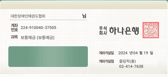 3. 대한장애인태권도협회 통장사본(하나은행) 1부. 끝.